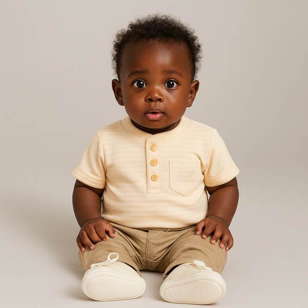 Crafted from 100% cotton, the Sage Jacquard T-shirt in green offers a soft, breathable fabric ideal for infant boys’ sensitive skin. Its gentle texture ensures comfort throughout the day, while the durable cotton construction supports everyday wear and easy maintenance. This stylish yet practical piece provides a perfect balance of quality and comfort for your little one.